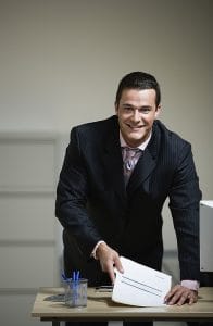 Man looking through papers on desk