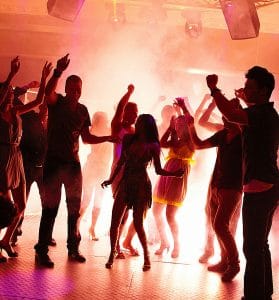 Young students dancing with joy in a disco